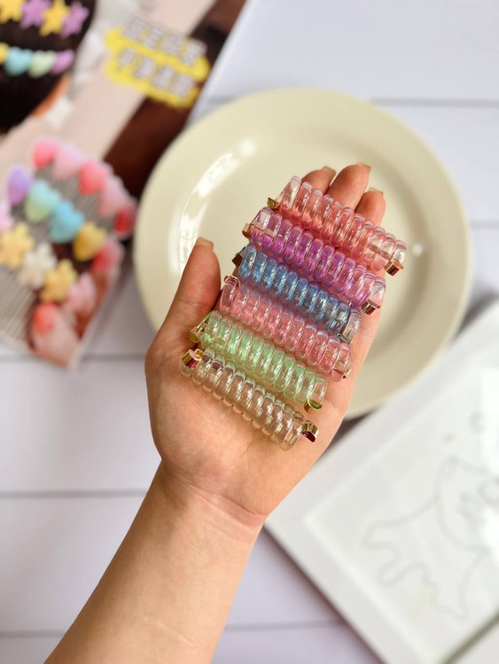 پک کش موی سیم تلفنی در رنگهای پاستلی و شفاف، مناسب برای استفاده روزمره بدون آسیب به مو. این کشها به دلیل طراحی فنریشان، به خوبی روی مو میمانند بدون اینکه باعث کشیدگی یا گره خوردن شوند. انتخابی عالی برای استایلهای راحت و شاد دخترانه.