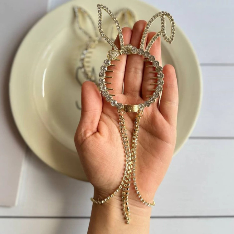 گیره موی گوشخرگوشی با نگینهای درخشان و طراحی خاص