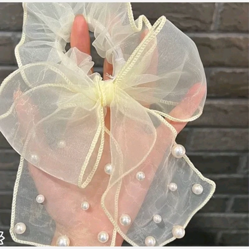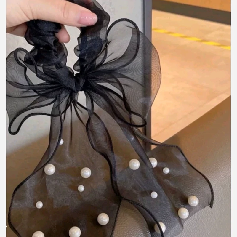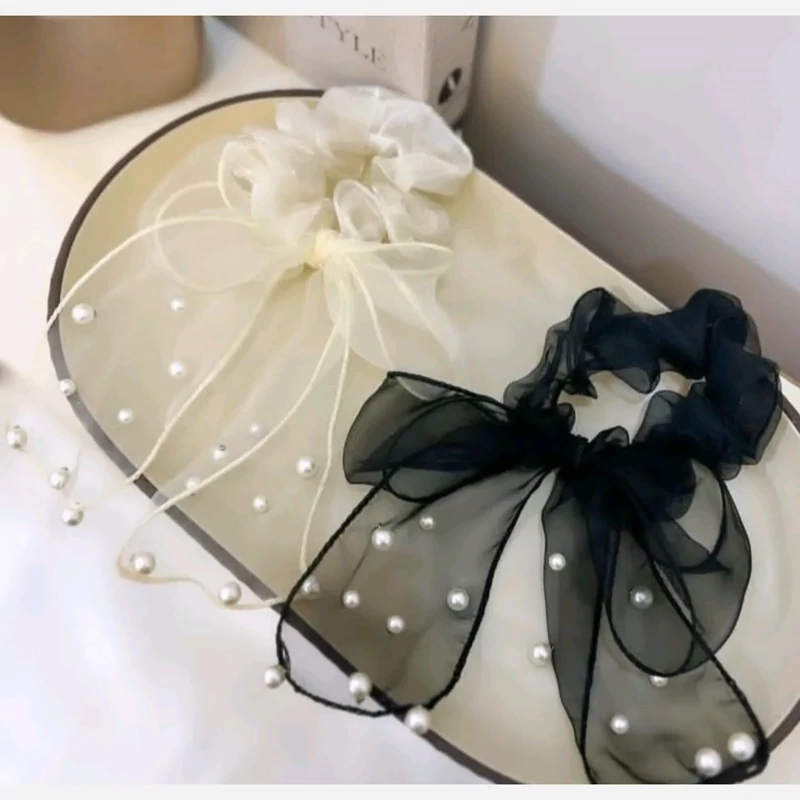 کش مو حریر شیشه ای مرواریدی کار وارداتی کش کارشده داخل کار یک سانتی مناسب تزئین گوجه ای،دم اسبی یا کش موی روزمره